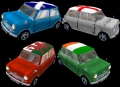 non-drivable mini cooper with 4 skin variations. (ooh-err missus)