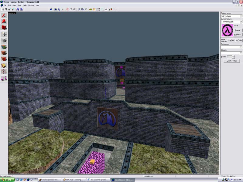 ), but then i started to get more into the conc jumping as a medic. there just seemed to be a great feeling of freedom once i'd learned how to use multiple concs. this would be around the time that i actually found worldcraft on my hl cd. i already knew how to read blueprint type plans, so the editor was simple enough as far as world geometry was concerned. and as i was planning on making maps for skills practice, i didn't need to concern myself with complicated ent setups. only the basic stuff like lights, tele's, resupply.