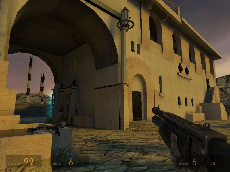 There was an earlier version of the map with two antlion guards in the courtyard instead of the gunship. After playtesting with members of the SnarkPit, I decided that having a gunship can take advantage of the layout of the map so much more than the antlion guards. The older version is no longer available for download. I hope you enjoy this new version as much as I enjoyed creating this map.