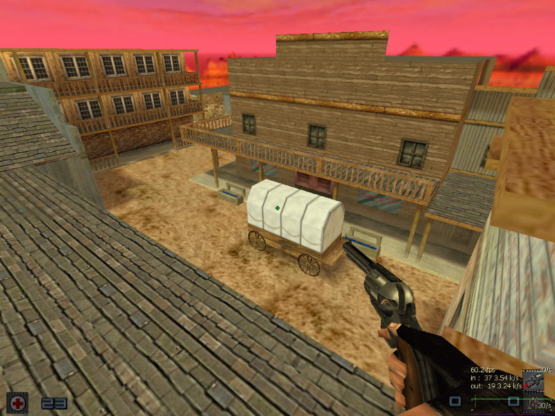 This is a western map that I made for ahl. I would like to thank beer hunter for his help on the map. I tried to keep the map authenic with the western theme. A Outlaws mod version is soon to come. My fellow mappers of Corpsinhere, skullman and kaos also pariticpated in the making of the map.