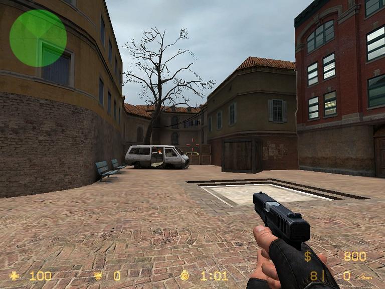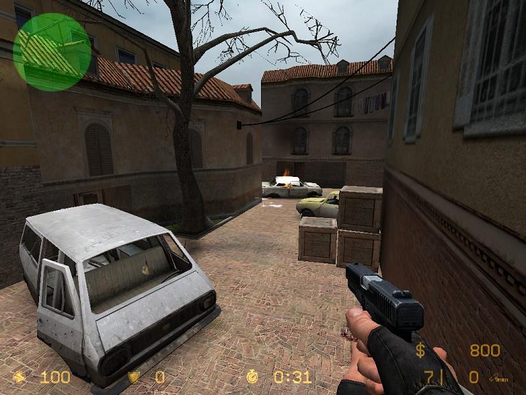 A CS:S urban map with a basic layout following de_dust style, trying to recreate battles in the middle of the streets.