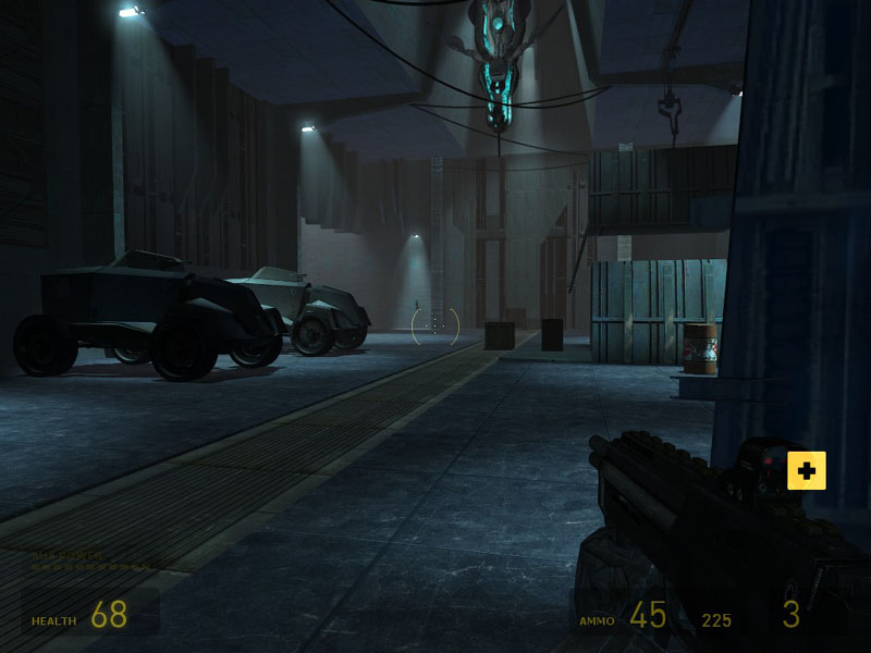 The theme of the map is based on the Combine architecture found at the end levels of HL2; it takes place on an Combine Outpost farther away from the city.