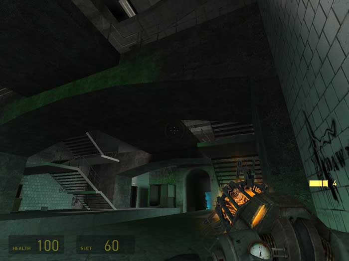 Secrets: You can phys-jump onto the roof of the center building, there's a crossbow and two armor batteries up there. Best way to do it is to use the radiator.
