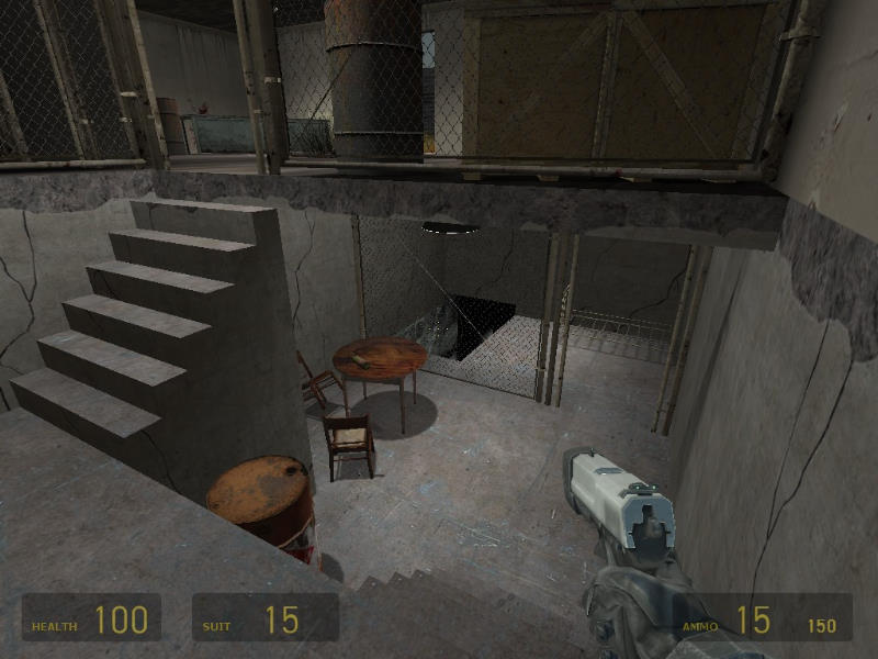 The first screenshot looks lovely :D, the whole of screenshot two looks to grey consider changing the stairs as well. Screenshot three looks nice except for the repetetive texture on the rock in the background and the building needs some work, add a roof maybe