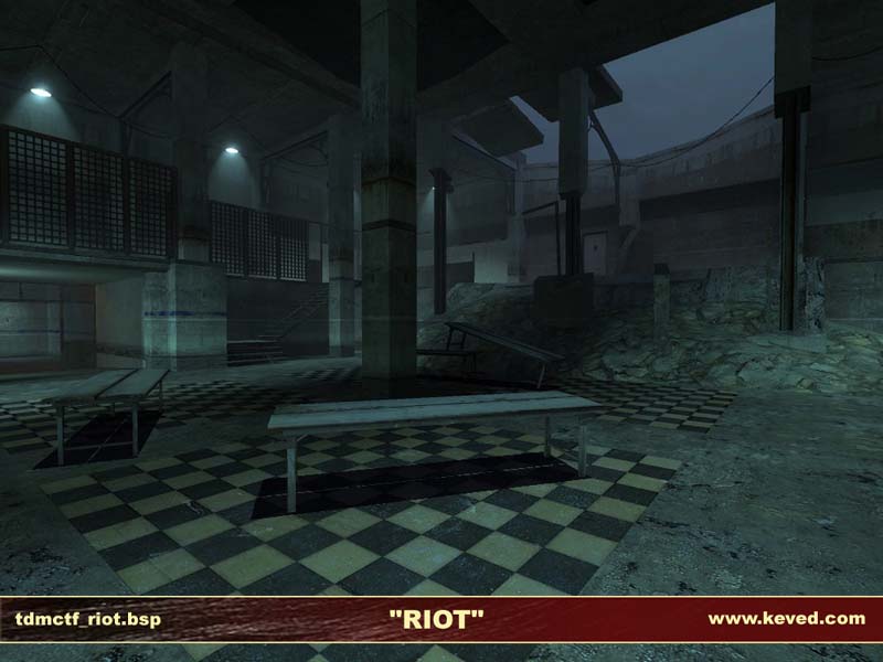A Capture The Flag level set inside a prison during a riot. The prisoners are in command of the prison, with Combine armed forces brought in to breach the walls.