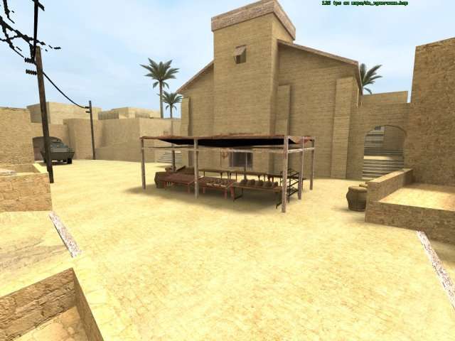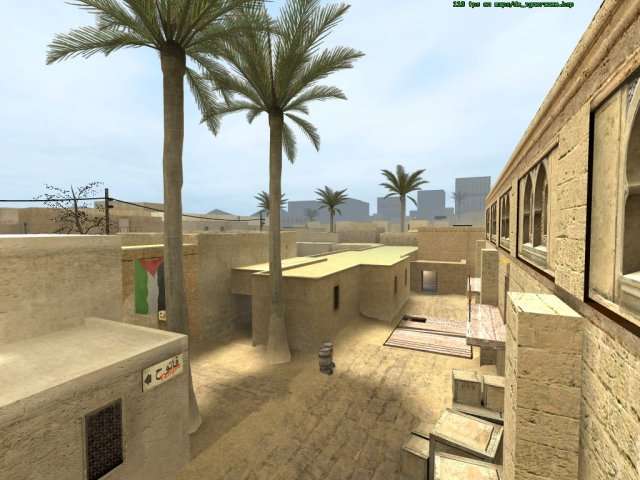 This map is set in Iraq, in the old quarter of a sprawling city. It uses ideas from a number of the popular maps: cs_italy, (the apartment route) cs_militia (the tunnel route), de_inferno (gamble on which route the T's have taken and try to recover from mistakes), and it's largely based upon de_dust's traffic pattern (rush to center conflict area, and an underground tunnel), but with extensive additions.