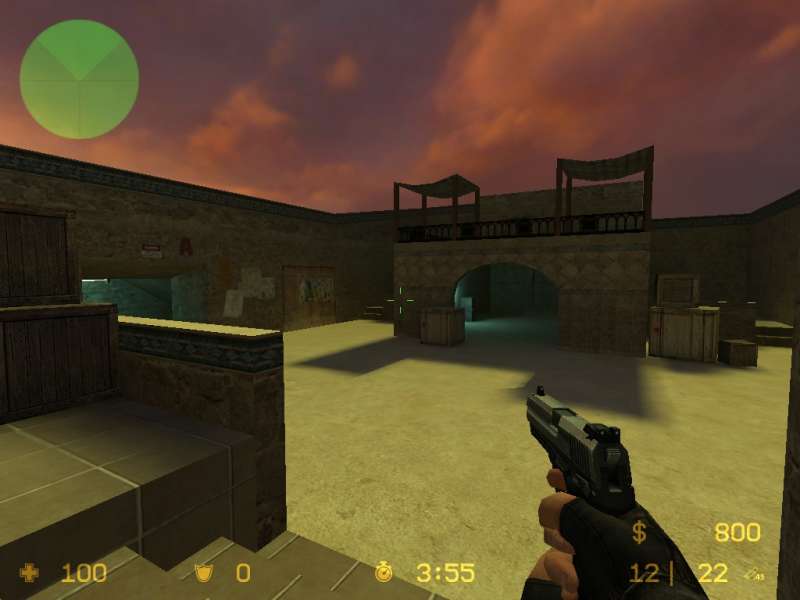 A dust-like map that was originally made for Counter-Strike. The architecture is very simple (hence why it was made for Counter-Strike) but it recieved a little overhaul for Counter-Strike Source. The main 'feeling' of the map is archeology, hence the name 'de_archeo'. Terrorists have to bomb one of two valuable spots to win.