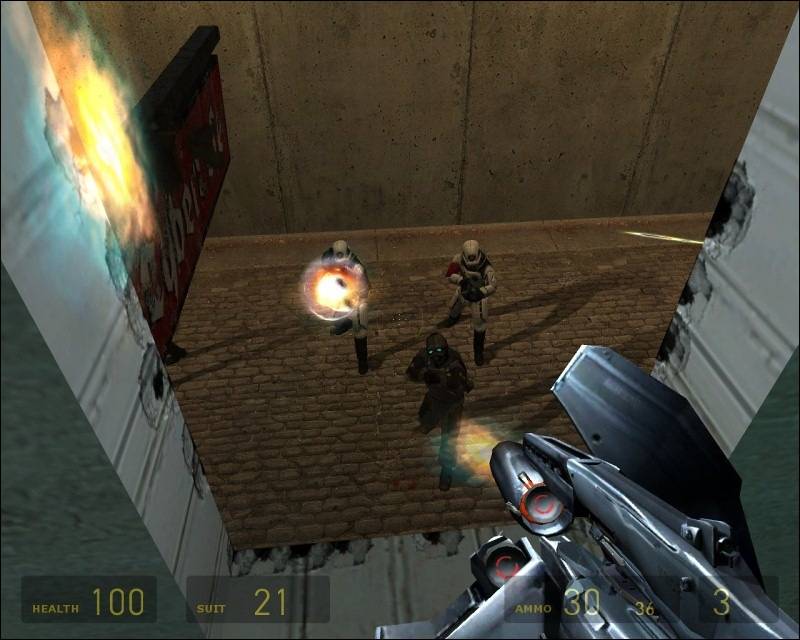 But that's not to say there aren't any creativity that went into the maps. The gameplay at times offer something relatively refreshing. One shining example for this is the indoor level where the player hunts (and was hunted) by a squad of combine soldiers. It's more like a cat-and-mouse maze game than a shooter, and this offers tremendous tension and thrill for the player. Every turn of corner potentially yields a shotgun toting combine.