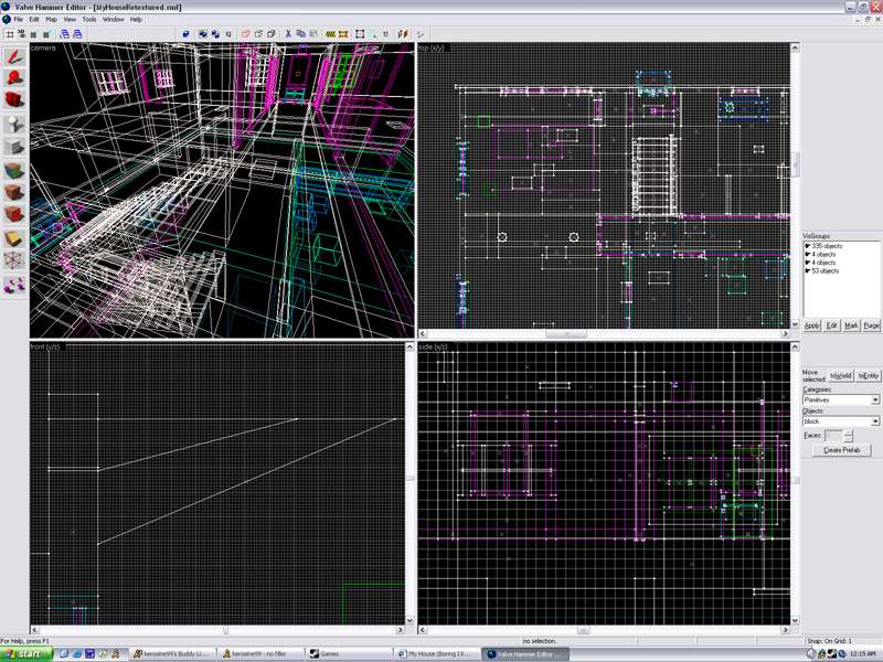 My first attempt at mapping was to recreate my house from memory, and then turn it into a hostage rescue map for CS. Obviously, after putting some time into it I realize my house would never be a great place for a hostage rescue scenario. So, I stopped work on it. However, I wanted to add it to my maps because I feel like its my first attempt at a fully realized environment/level.