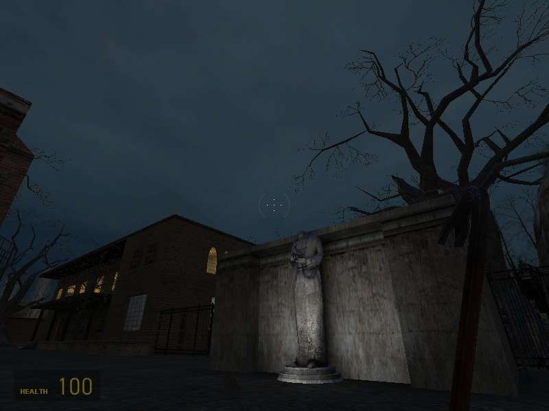 I think its far too dark, i know its suposed to be some kind of spooky graveyard thing, but if you cant see anything, the spookyness disapears, and its also very hard to make a spooky hl2dm map, since youre just shooting people for fun, if it was sp and you had crabs and zombies it would be different