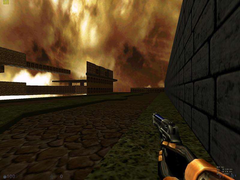 Screenshot 1 is a screen of "Gateway", Screen 2 is a screenshot of "Not Quite a Level" And the trashy shot of screen 3, is "Cyberstreet". Please note that I have much better areas, and more up to date, screens of Gateway, but I have recently done a full bright compile, and I'd like to get a screenshot of the map out for right now.
