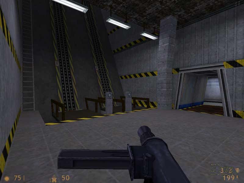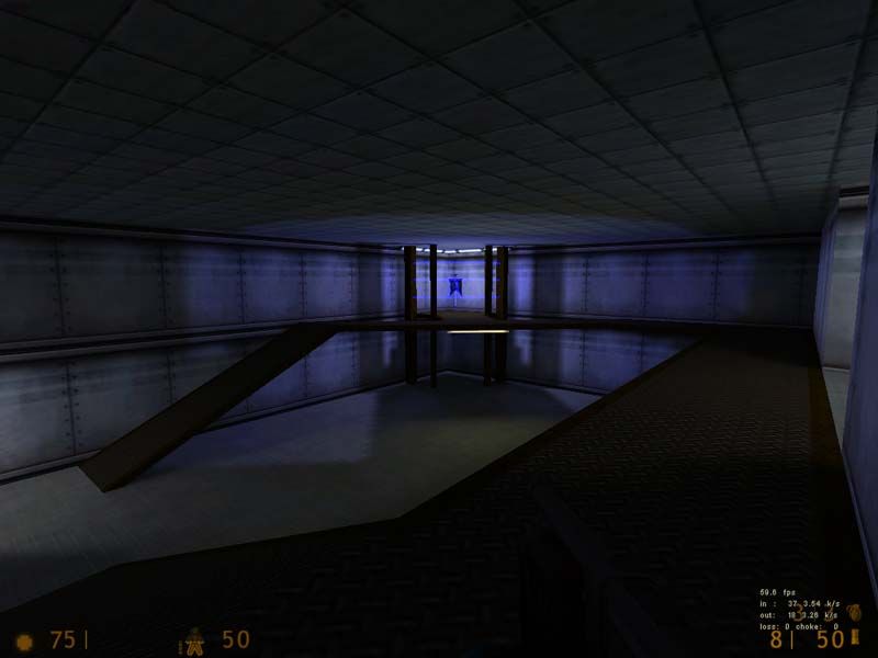 Also, much of the level is under water--at least all of the outdoor space between bases is. So you don't drown like a pathetic wretch, I've added some Air Suits. Ok, they look (and sound) like HEV suits, but they give you air, and that's all that's important. They'll give you 30 seconds of extra air, and are available from the bottom and middle team base exits, as well as the Neutral base exit. The suits in the team bases are usable by anyone, while the suits in the middle base are available for the team that owns the Command Point. Oh, and be nice, leave suits for the rest of your team.