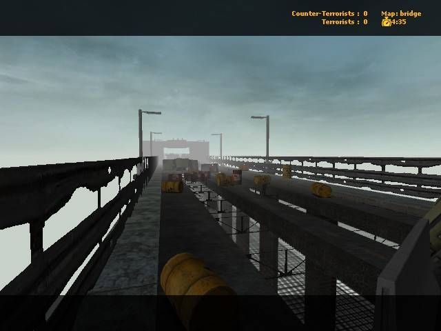 small deathmatch map. First map i've given out to the public. It is supposed to look like a very tall bridge with clouds sourrounding it and obscering your vision sort of like fog of war the map plays pretty quick because it small. It tends to play like a one sided battle with bots cause they tend to fall off for some sort of reason. Also i would like as much feedback as possible to make this map better or make a new better one. also the screen shots show manly the top part of the bridge. The guide rails are fixed and will be adding a 3d skybox soon after i figure out how to.