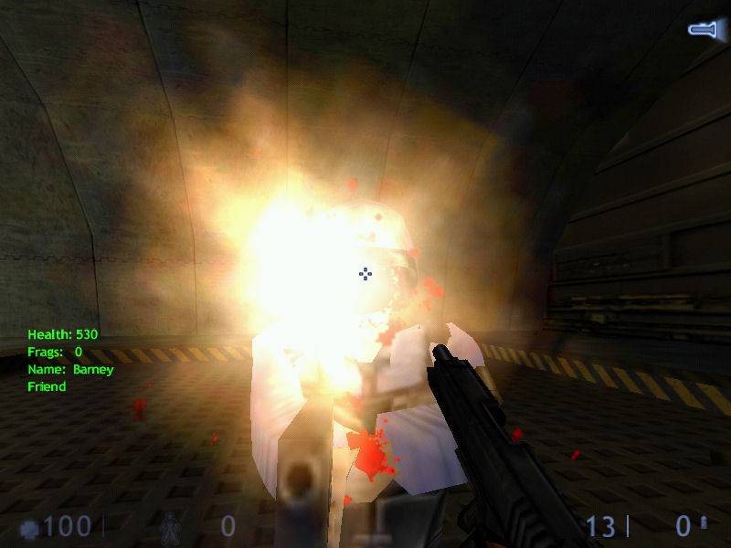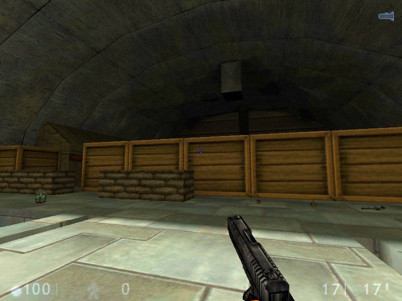 players start in a large hanger, looking accross at another large hanger, both at a distance, and can only be reached by a bridge, hard to explain,.