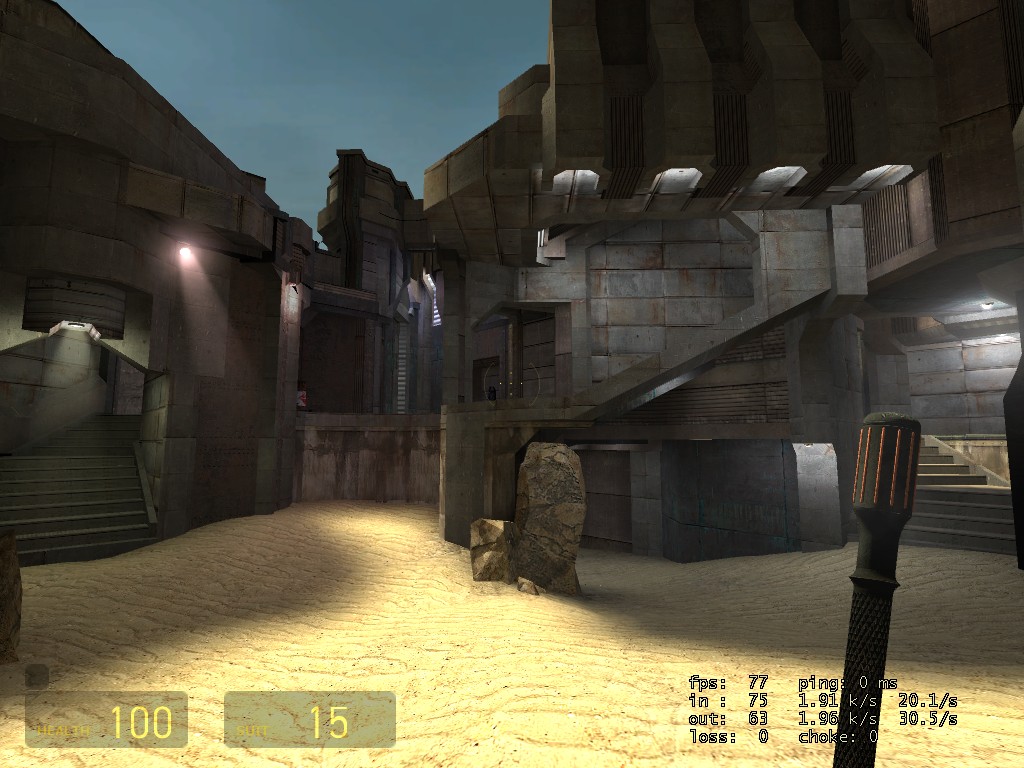 There is one thing: the map hardly has any props so the gravity gun is almost useless. This is mostly due to the fact that AG? did not want to have props and the gravity gun like HL2DM.