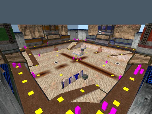 Map looks not bad. Some nice basic room shapes and a good classic HL feel to it. Some feel a bit too empty though - I'd be tempted to put something in some of those larger rooms. My biggest complain is those cliffs. They are higher than the walls to the sides of them yet when they reach these walls they just stop - it looks bad and awkward. Make them extend along behind the walls, or smooth them down to meet the walls, or curl them back so they continue back behind the bases a bit. I'd encourage you to go with some triangle based cliffs but if you don't then at least do something with them.