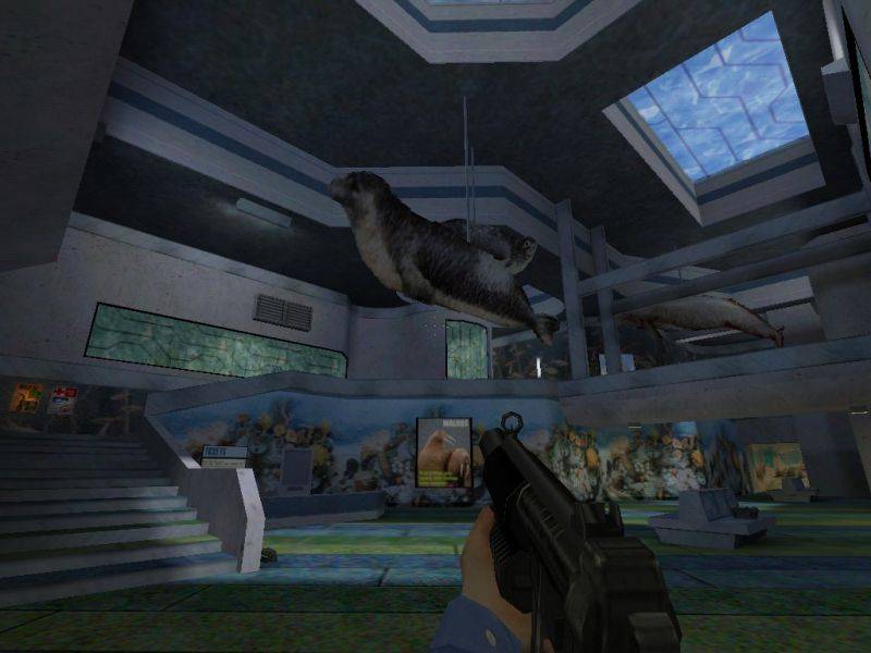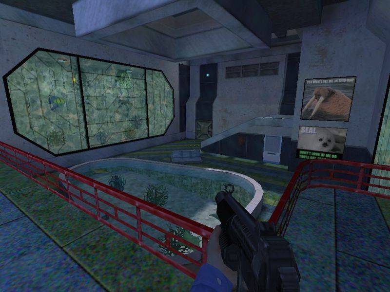 While an aquarium is an interesting place to have a frag fest, I think its a little odd to have a shotgun in a child daycare center =P.
