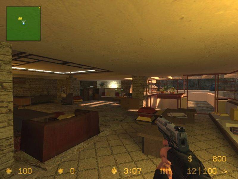 There are 4 hostages in the house. CT forces have the advantage of a quicker trip to the hostages, but terrorists can use the many terraces and exits of the house to take out the CTs. Due to the nature of the building, there are multiple ways to approach and defend the house, making each round different.
