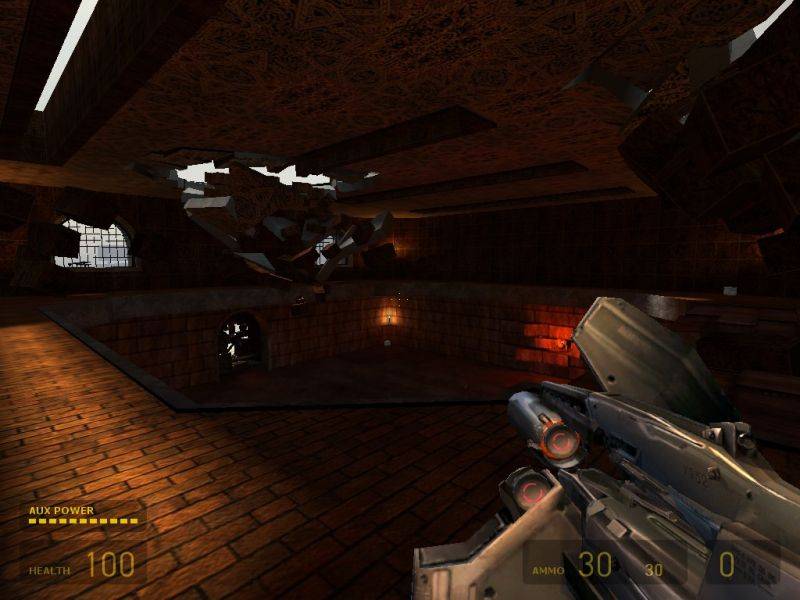 You have done a good job at the debre and stuff. In picture 3, the falling debre looks very sexy as does the damage taken by the floor in picture 2. But other than the very realistic looking damage in the map, there is no other detail. You are missing what I don't call 'props' but I will this time. Such as pot plants, rubbish, planks of wood, chairs, crates...... . Now these props are not suited to this map but you get the idea of what a prop is, or what I think one is.