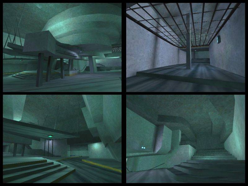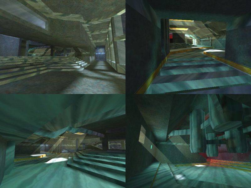 These four HLDM maps, FloatingPoint, FloatingLine, FloatingSurface and FloatingVolume consitute one of my playground themes for abstract architecture and light experimentation. They all have similarities in texturing (same palette, use of the HL glass textures) but are very different in layout and approach to gameplay. While not the prettiest textured maps ever made, they did help to "free my mind" and some of the ideas have been incorporated successfully into my more "normal" maps.