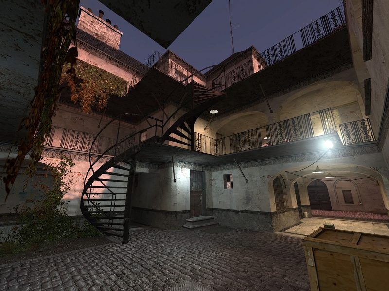 After some of my recent maps grew way out of proportions, I tried to do something smaller, something simpler this time. A HL2DM map that just works. There's plenty of vertical movement with balconies and rooftops to jump around. Some tight close-quarter fights as well as larger and more free areas for quicker movement. Once you found the RPG, watch out for a sparking power-box, shooting it will electrocute anyone standing on the little white roof.