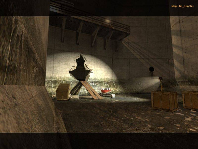 2. The layout isn't working too well IMO. The main hall is quite nice, with neat use of large pillars to break up the play area, and the raised ground sections with stairs leading up act as bottlenecks that enable players to predict the movement of enemies. Thing is, the rest of the map is just a bit boring. Every other area is just corridors, featuring no internal layout or cover. Such areas are good when used in small doses, leading players from one interesting area to another, but here they take too long to navigate and lead you into yet more corridors. A lot of them are also painfully long. The upper corridor with the combine rifle is far longer than it needs to be and has nothing to break up the journey along it. Its really screaming out for a room that then connects to elsewhere in the map, so as to provide a route choice. I'd have been tempted to throw in a room with a broken floor somewhere above the "hole in the wall" RPG room, that allows players to connect between the two. Basically you want more rooms like your main area, that offer choices of route and internal layouts. Less corridors.