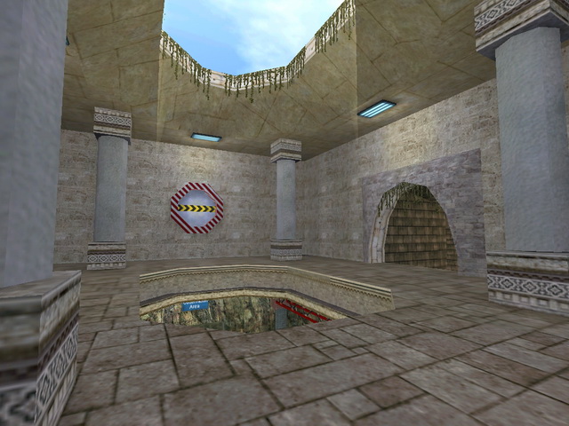 Small circular map in type of numeral 8. Together crossings, big hole. Hole connect two rooms (Top and bottom). Also else there is two rooms with teleports, port in central part of map.