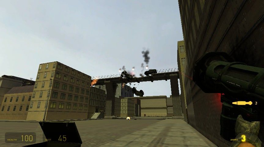 This was my first single player map for Half-Life 2. Although some scale errors were made, it is still a lot of fun, more so if you use the console command 'ch_createjeep' to create a buggy and drive around running over enemies. When I was building this map, I actually did make an armoured jeep, but that was only for a bit of fun when testing the map. When I look back at it I should have left it in, purely for the reason it was fun. The reason I didn't because I felt it wouldn't have been realistic.