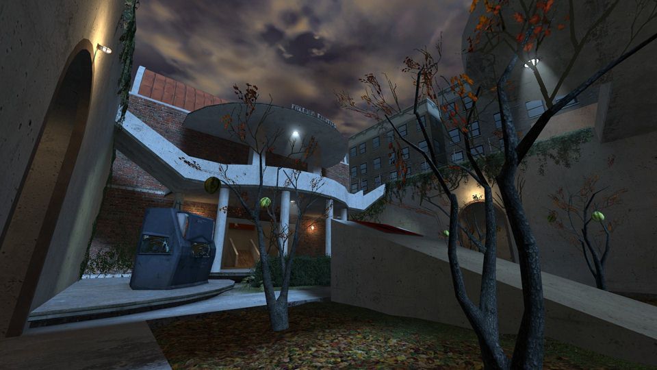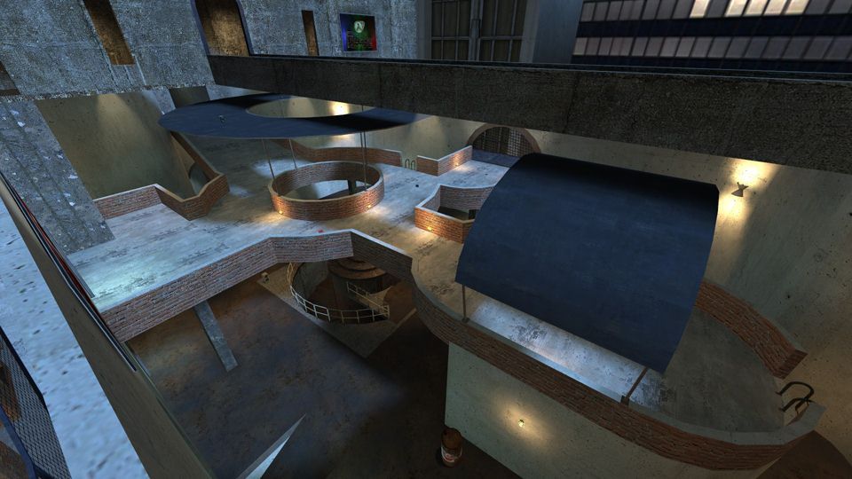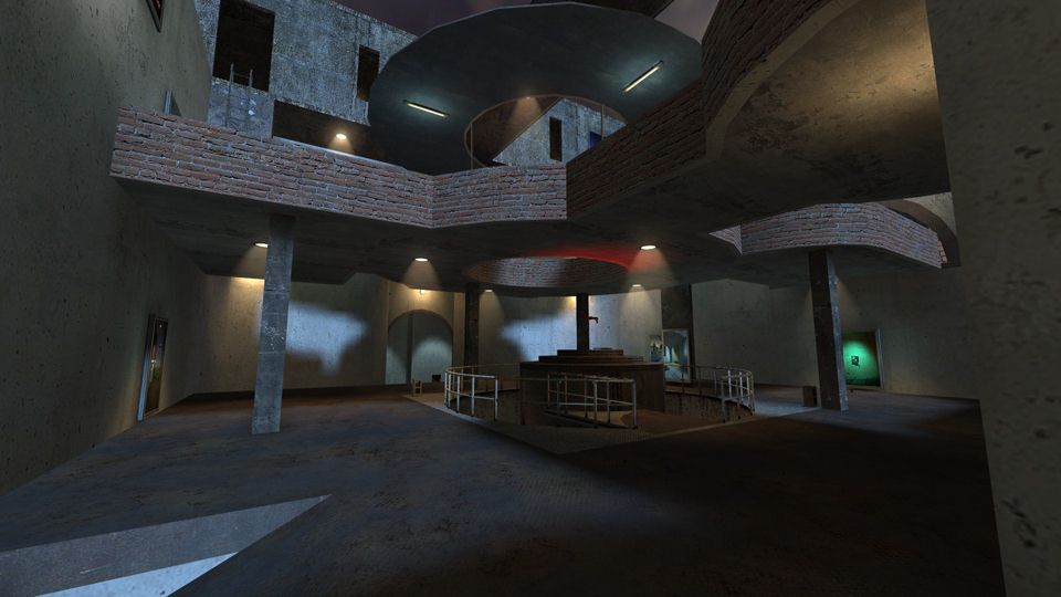 So I widened the walkways in the upper west courtyard. Added some awnings for drop down Z-axis fun. Added some teleporters to several different parts of the map to aid gameplay. Re-lit the entire map(and added a tone of walkway lights), enlarged the "Jump" pad, clipped the outer walkways(so you can't get outside the map now), and btw the whole map is clipped to facilitate low grav servers,(but the frame rates might not be so desirable from way up there unless you have a monster rig.). There are no screenies of the lower area, as not much has changed there. I must admit that the way my brain works, sometimes I need to step away from the mapping for a bit, and usually, something will come to me.And, the watermelons in the "Pluck-n-Chuck courtyard are 'splodable now!