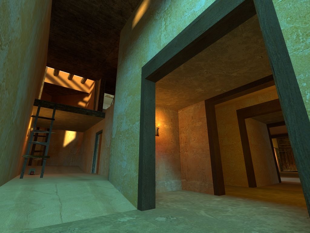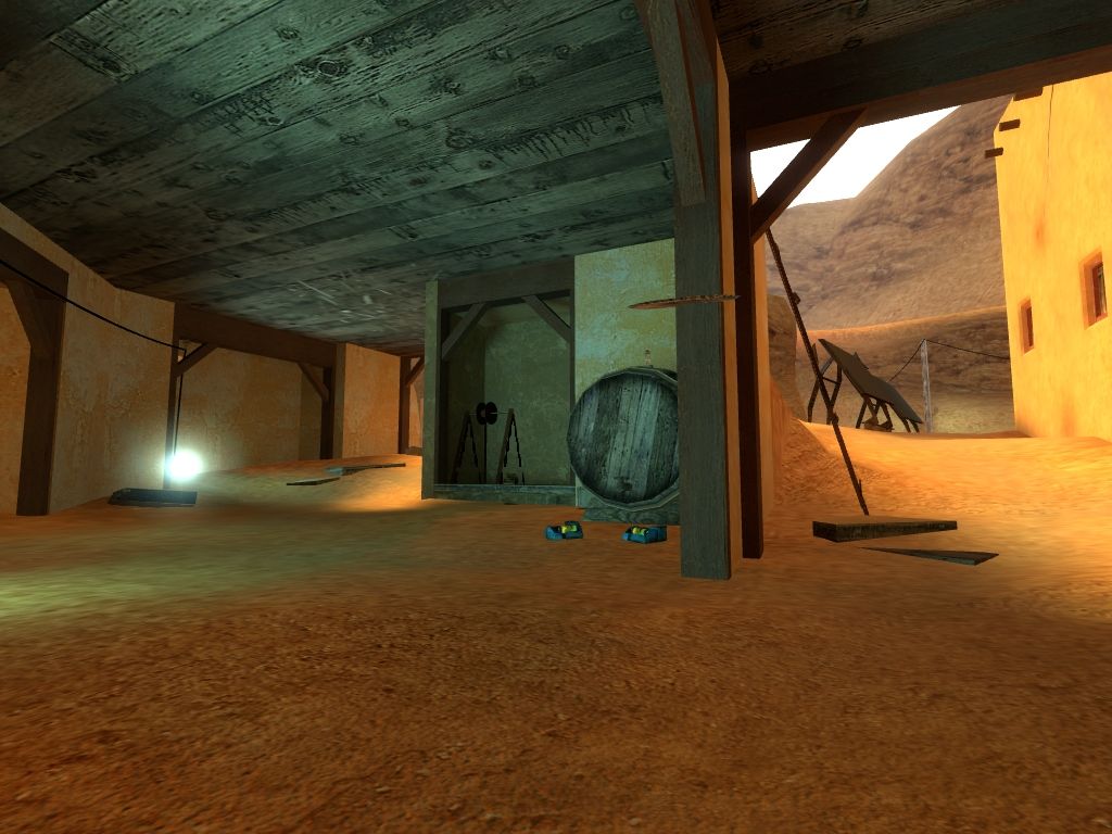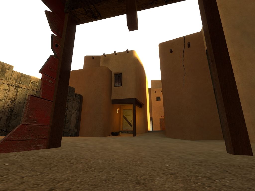 thx Dedi. To answer your query the exterior wall textures are all imported from the cncr pack with a few modifications to colour. The sand and red rock I think I got from css and made a blend out of them while adding a bumpmap. Most interiors are painted with stock hl2 textures.