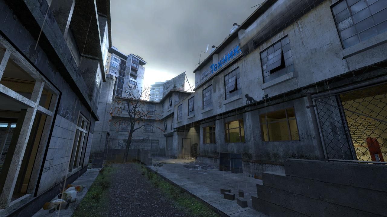 I would reduce the amount of props in places, as 4 barrels and 2 palettes or a stack of 6 tires is a little too generous. I would remove some of the less useful props that serve as decor more than grav gun ammunition such as the wooden chairs and tables. I would also turn some of the breakable props into respawners.