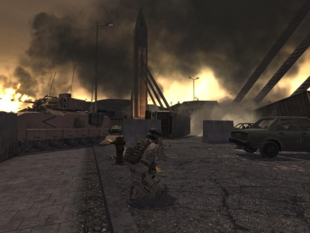 Here is a very nicely detailed bridge with plenty of destroyed cars and debris to take cover behind. Perfect for both snipers and people who prefer close combat.