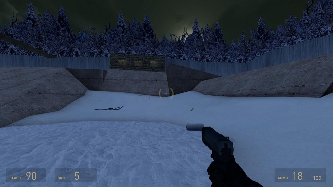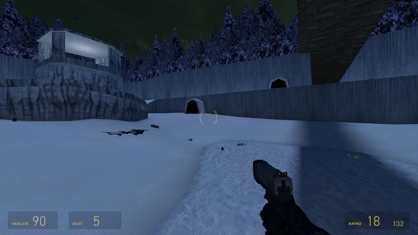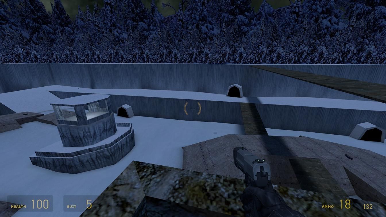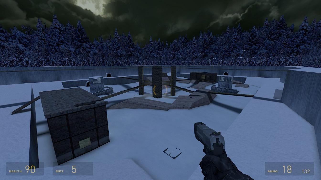 This map is set in the winter in a rectangular valley in the middle of the forest with lots birds flying around. Set at night with the moonlight. Has many upward push streams and a few teleports to help get around the map. I loaded up with weapons, the map may be more challenging with removal of certain powerful weapons like the rpg.