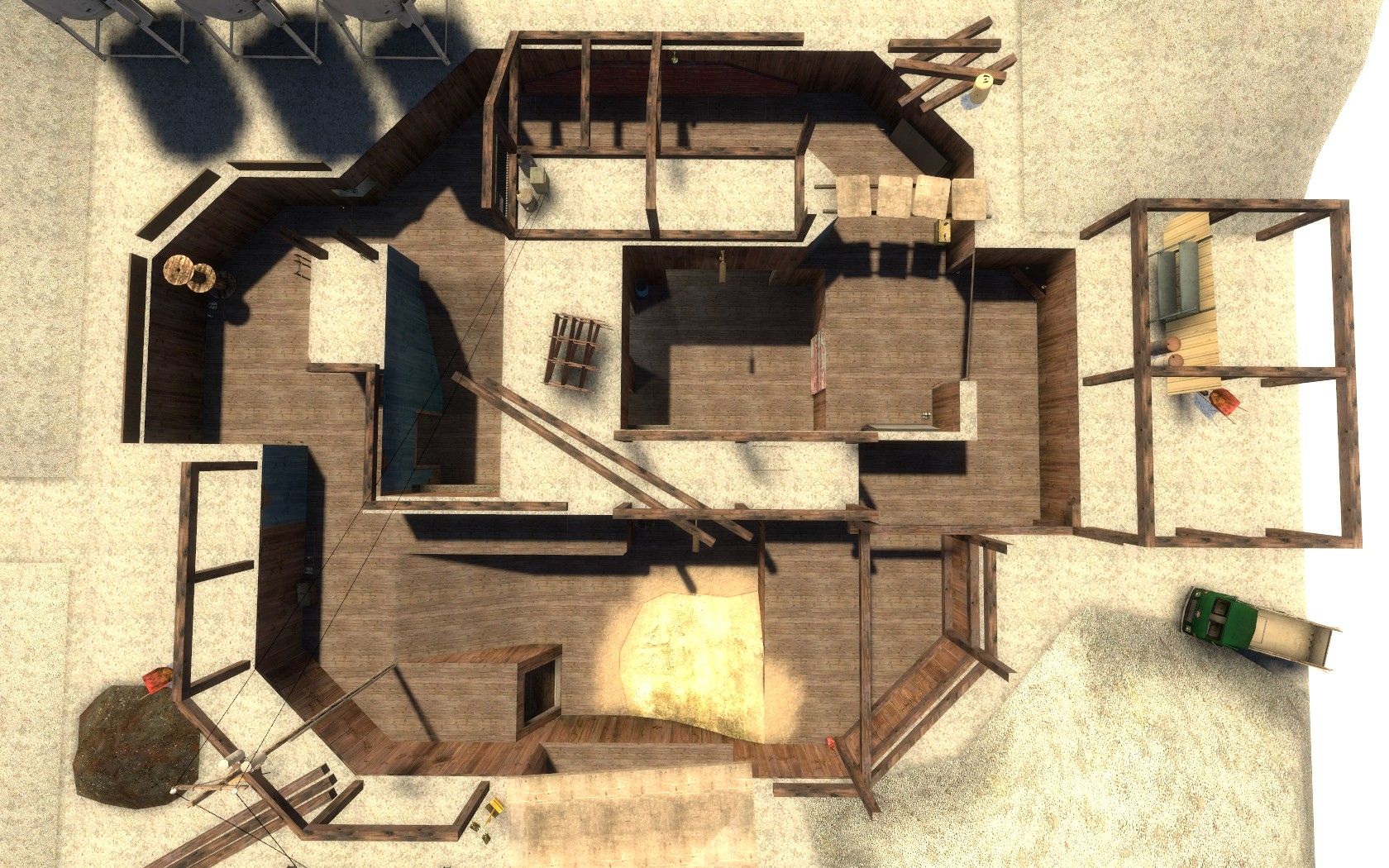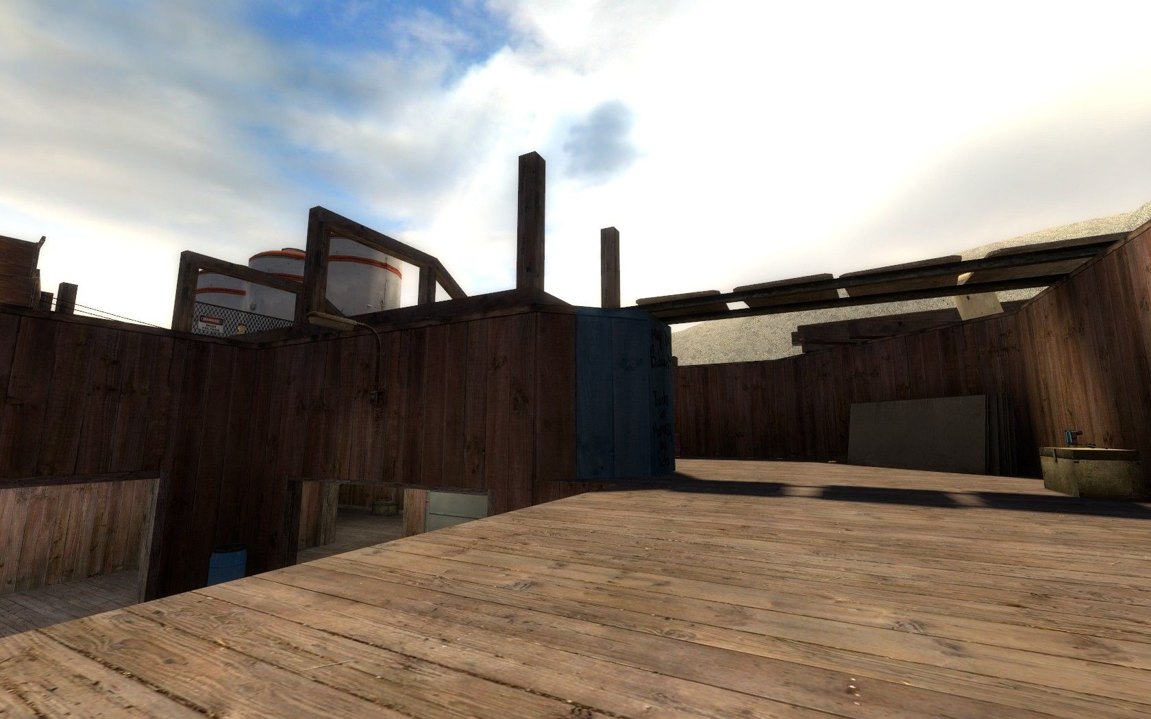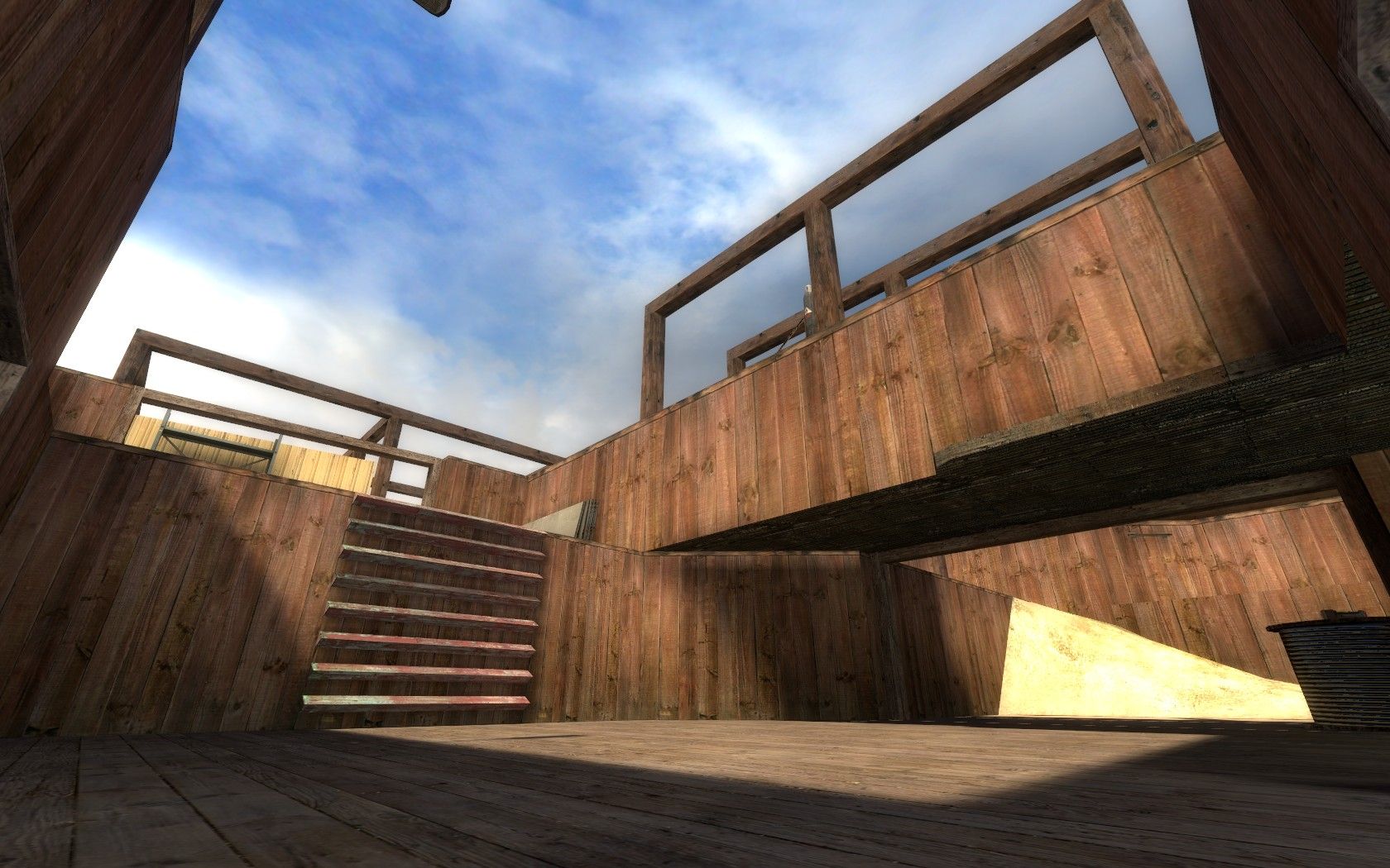 that will offer fast and good gameplay for 1v1 and 2v2, and something with unusual appearance, a fresh theme. I chose the wooden style, because I have never seen any HL2: DM map in this style.