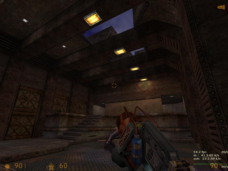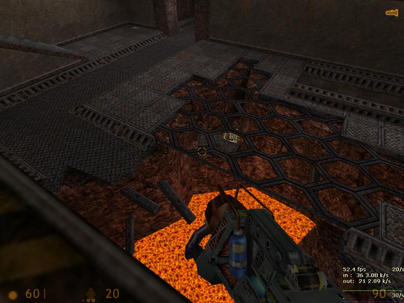 This is a medium-sized, fast-paced map that's fun for the whole family. There are six main areas interconnected with hallways and teleporters. All of the weapons except the snarks and hornetgun are included. Getting the egon is possible, but don't be cursing at me for tricking you to go after it. I made sure that the weapons are balanced, and that the ammo placement forces people to move around if they want the most out of the more powerful ones like the gauss and rpg. In my opinion, this kind of weapon/ammo placement provides the best deathmatch experience.