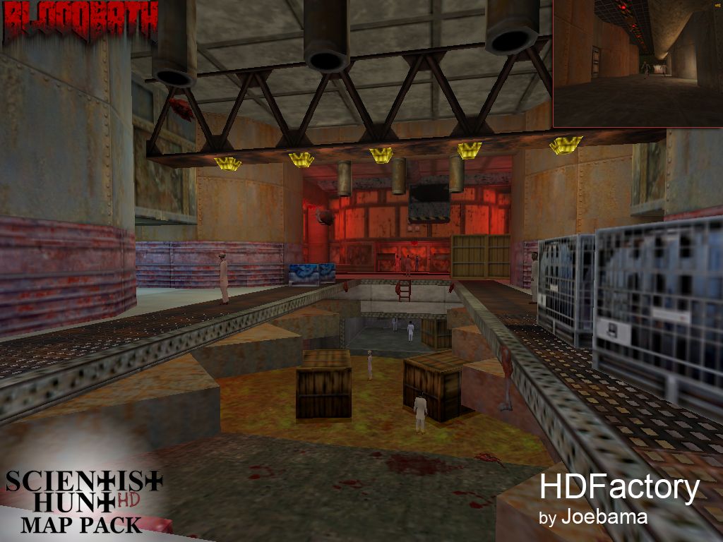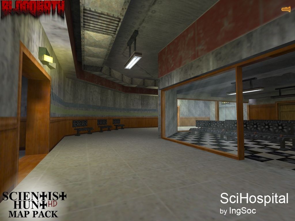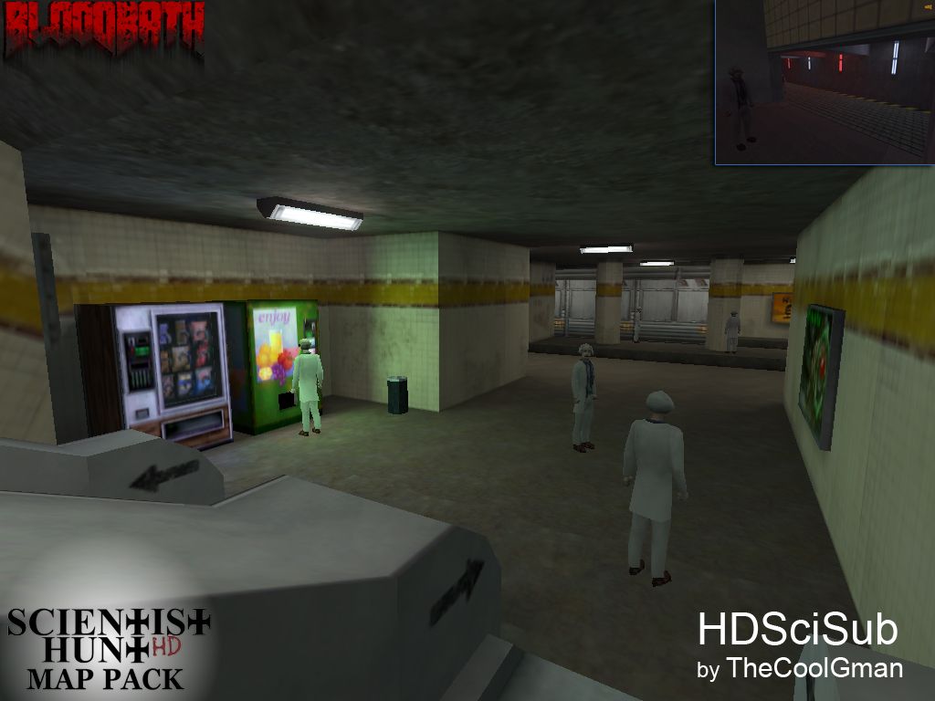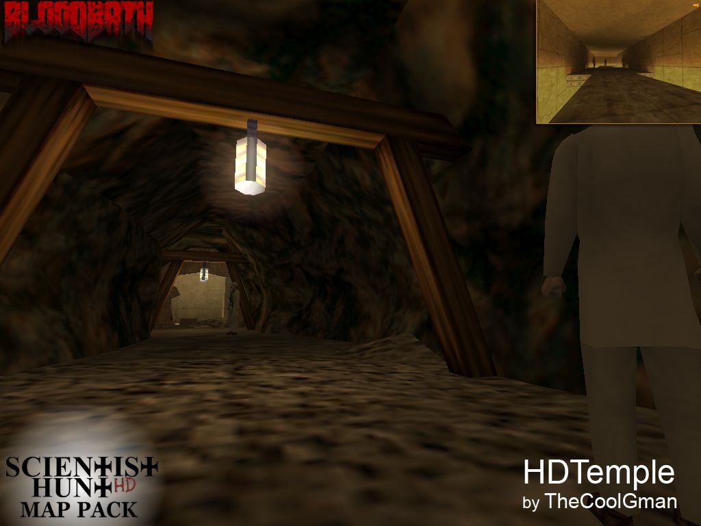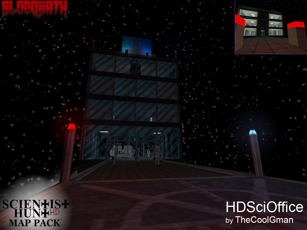 Scientist Hunt HD Map Pack was thought of in May, and started in July. The goal was to make HD versions of the stock Scientist Hunt maps that are in a similar style to Hondo's "HDSciHouse". It started small and grew into something much larger. Before we knew it, we were making not only remakes, but new creations of our own. This pack contains 14 maps with their own textures/sounds/models. This has taken about five months and we hope you enjoy the pack. Also look out for Dopefish, he seems to have swam his way into our maps...