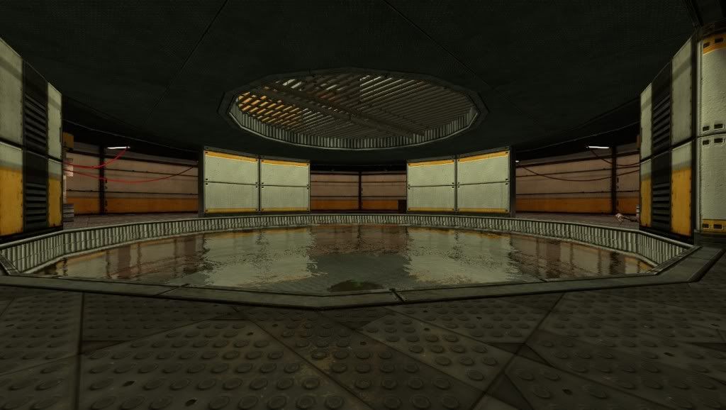 Many hours have been spent developing a deathmatch map that looks more realistic and detailed than maps of old. NextGen features new HD textures courtesy of texture artist Philip K, who provides free not-for-profit textures. NextGen moves away from traditional square killboxes and introduces a multi-environment arena, based on cylindrical shape and transitioning-platform, which transforms the environment at the flick of a switch. NextGen returns with the traditional lift platforms seen in killboxes, and uses water to add an extra element to the gameplay.