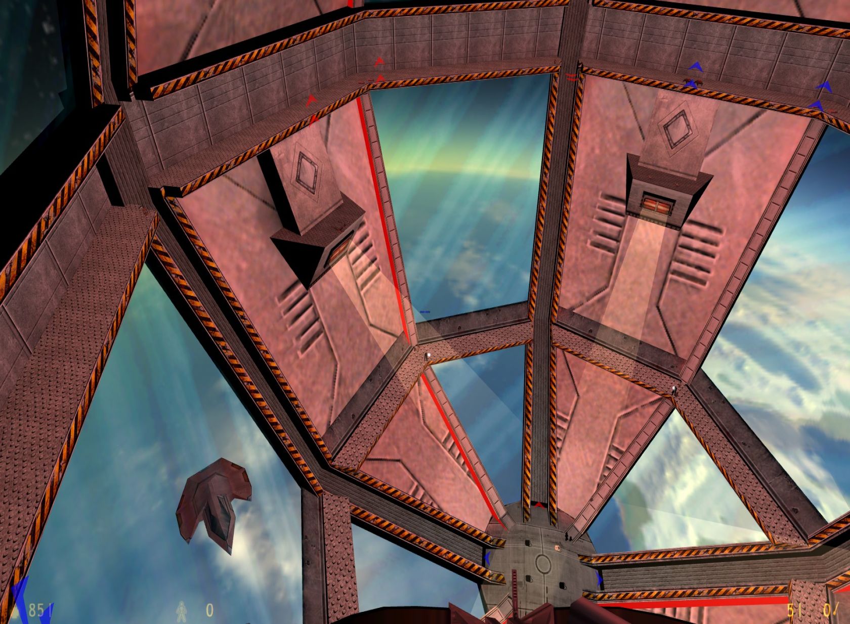 New Work in progress. A sphere environment varying gravity levels wrapped with repelling force fields on the inner walls. This map is VERY fast paced, there are multiple gravity levels depending on where you are in the map as well as which gravity level is best for the game play in the area you are in. The original sphere concept was created by CreepItAll. This map has a total of 32 bounce area, 12 flings with 8 more flings planned. Landing on any of the bounce areas produces a sound and a colored force field temporarily appears. The force field color varies as you can see in the images. This map is about 85% finished. An outside area with planet sprites is planned as well as a few secrets. We are in Beta 5 right now but no download is currently available unless I get multiple requests.