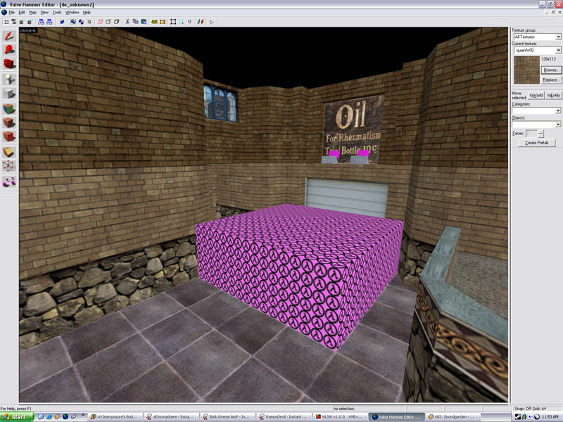 [ edit ] - since my .map has been deleted because of a weird error in VHE-? i can no longer make this map.