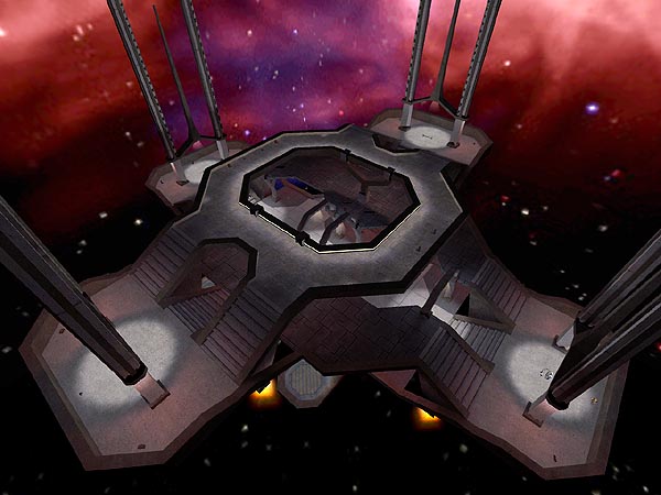After a while away from mapping I decided to go back to it and shove something together. My initial idea was to craft a high detail neo-gothic church, but r_speed constraints kicked in and I simply couldn't afford to put in any walls! So I was left with a floating space church arena, which I must admit I'm very happy with. R_speeds are insanely high due to the open layout and high detail, but despite this it seems to run smooth on most computers anyway, most likely due to the use of under 10 textures! It is best with under 4 players.