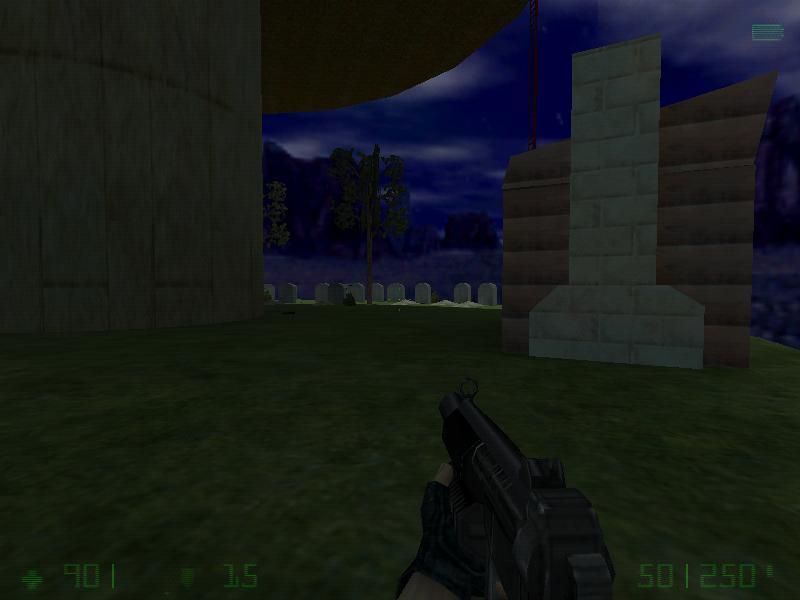 This map is quite fun to play. It has a graveyard, 2 huts, and some baracades. All this on 3 levels of play, with out walls....very nice. This I recieved inspiration to make this map from the old zelda games... This map has an eire feel to it...the wind is howleing by and the graves are starting to move. Was it your enemy? Or just the dead want you to join them....HA HA HA HA HA HA..........