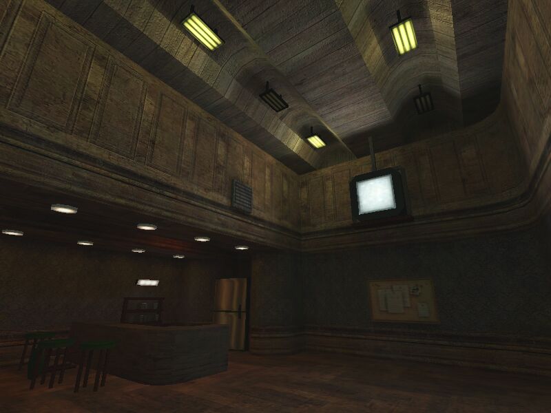 Good improvement on the second shot, keep this up throughout the map and it should be nice. I suggest you lose that notice board texture though, its REALLY bad, and looks out of place against the other nice textures.