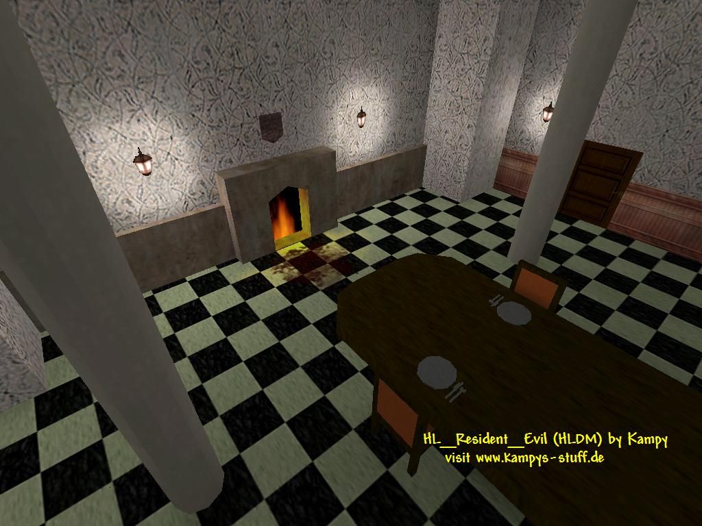 HL_resident_evil is huge - there are two big rooms, one is the main hall and the other the dining room and a lot of corridors and other rooms. If you dont know Resident Evil you might get lost and dont find the weapons or ammo. The two big rooms are seperated from the rest of the map through brushes and the doors work like teleporters, because the r_speeds were too high the common way. Since the map is very big you should at least have four people playing it who know Resident Evil or the map. The only weapons in this map are glock, shotgun, colt, machine gun and handgrenades - I really like the alternative gameplay and the atmosphere. This map is a remake of my very old Counter-Strike map de_resident_evil or actually it's the map that I wanted to make when I began with the map which became de_resident_evil later. HL_resident_evil is a map with a great atmosphere and special gameplay and I recommend this to all Resident Evil fans and to players who like big scary maps or want a total gameplay change from what it's normally.