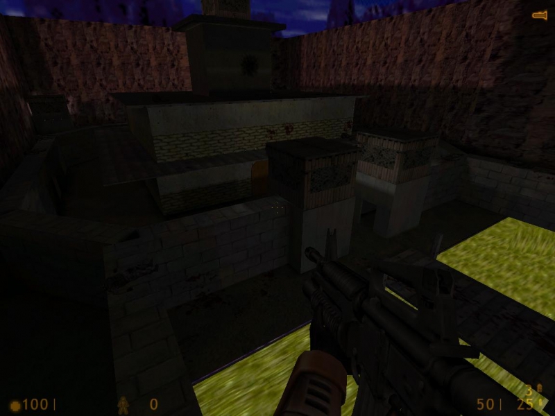 This is a huge Half Life single and multiplayer map, crammed packed with Grunts and Assassins, Your Mission: Locate and Destroy all aliens that the governments army is hiding in their well fortified base, find the Gman, and behind him lies the room with the 6 alliens you must kill, just getting in is the hard part, because, you will be noticed, so grab the bow and 50 bolts, and fight your way into the fields, and figure out a way to get into the building, then make your way into the sewers with red lights and find your way around, good luck, give me feedback please on what you think