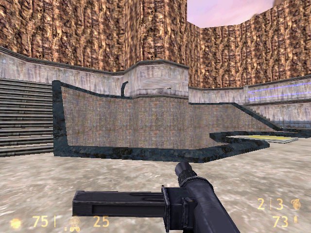The flag rooms consist of seperate teleportation areas to which the enemy team must wind their way through tunnels of a toxic waste polluted sewer.