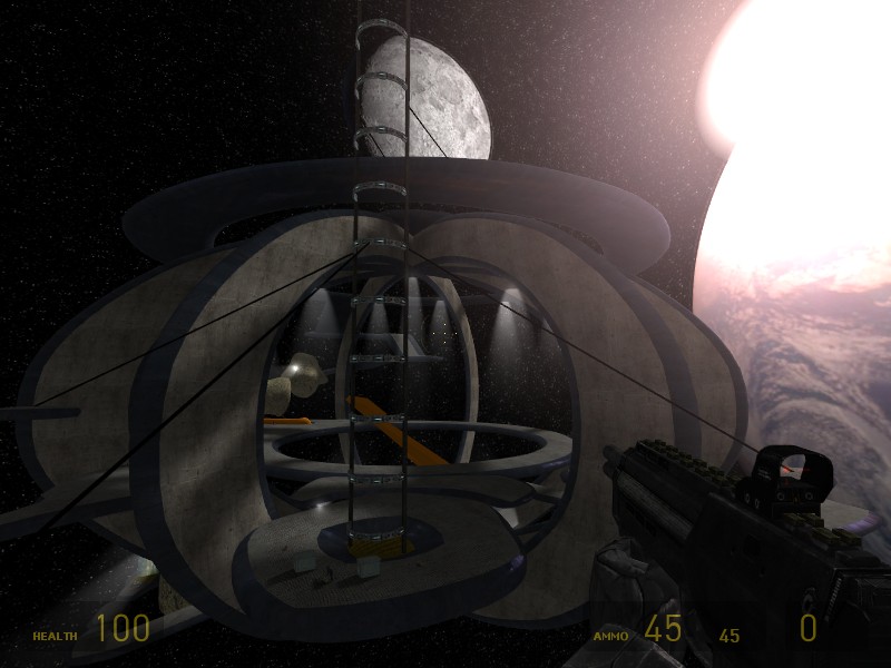 A space-located map completely made of displacement maps. Very fast Deathmatch ... !