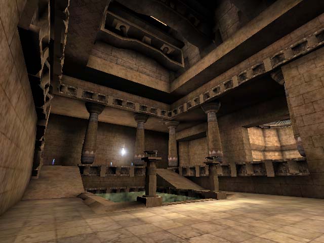This is my map for the egyptian themed assignment as part of an online Unreal level design course. It's a small map, I've been in a mapping rut for about a year now and haven't finished anything. This map has been started, tested and finished within 48 hours . It's too small for general deathmatch, and was designed mainly for 1 on 1 matches, but I find it plays best with 3 people in the match.