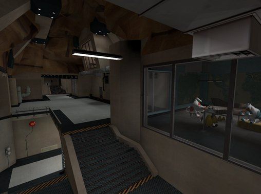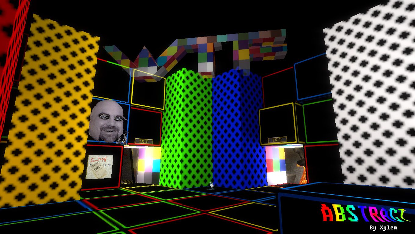 Duel_Idle_Trade_Abstract is the only map I can think of that has all of these crazy things in one map. During a silent time in development with Overturn, I started this project out of sheer boredom and experimented more with the Source engine. The main inspiration of this map came from Nipper and the J2 Abstract Mappack for CSS, along with Turrican and Hondo�s maps. After many headaches and keyboard smashing, I present to you the map you see here!