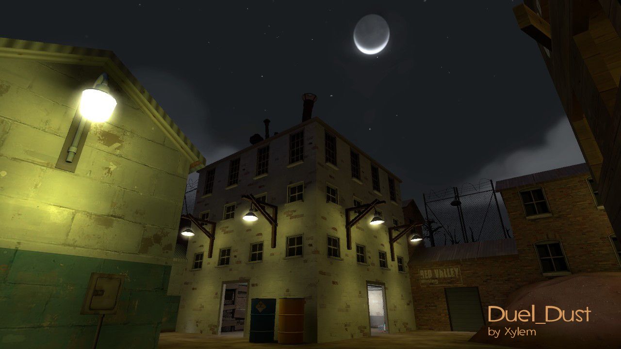 Duel_Dust is a small dueling map for Team Fortress 2 created back in April 2011 for a competition between a friend to make a dueling map before dawn. After winning and (mostly) finishing this map I ended up having a few matches, but due to its rushed time limit it wasn't the most balanced nor optimized (not to mention other bugs). So it sat on my hard-drive for over a year till I made the necessary decision complete it. The end result is what you see.
