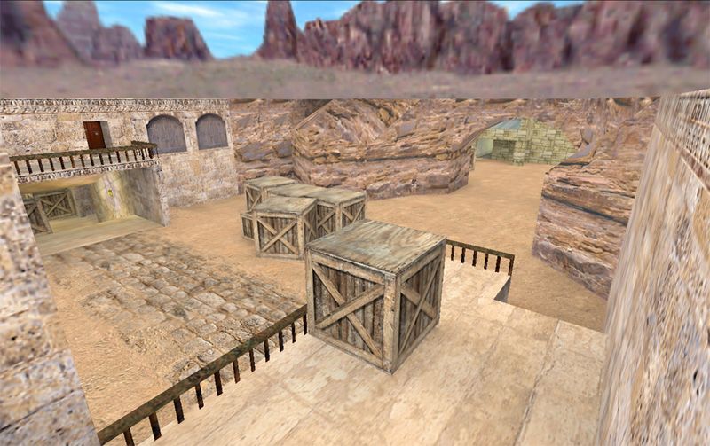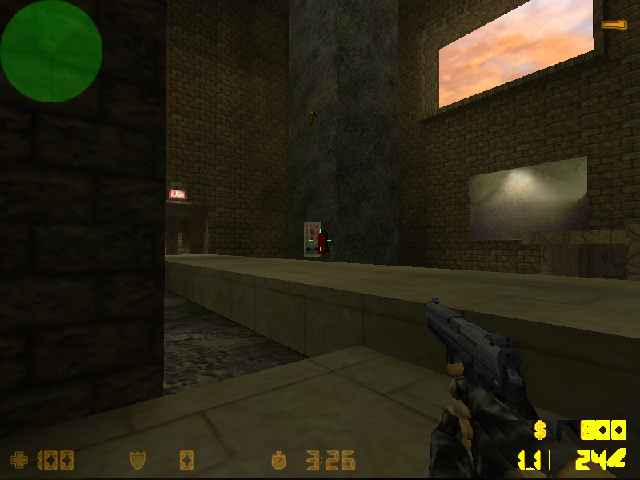- A security camera system is available to help the Terrorists defend the building. The camera systems are located in two areas; one cluster beside the Terrorist spawn area (containing cameras that overlook the map exteriors) and a second cluster on ground level (containing cameras that overlook the map interiors.) The Terrorists can reach both clusters before the CT's, but if the camera system falls into the hands of the Counter-Terrorists, they can use it to help their attack.